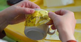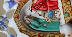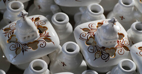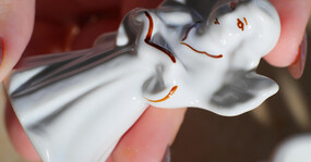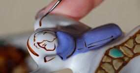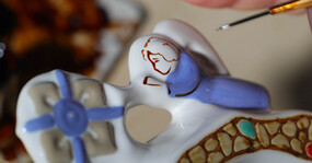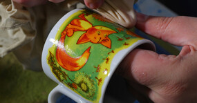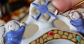 Основные этапы работы в этой мастерской — наклейка деколи, процарапка с позолотой. Мы побывали на производстве и понаблюдали за рождением «хрупкой» красоты.