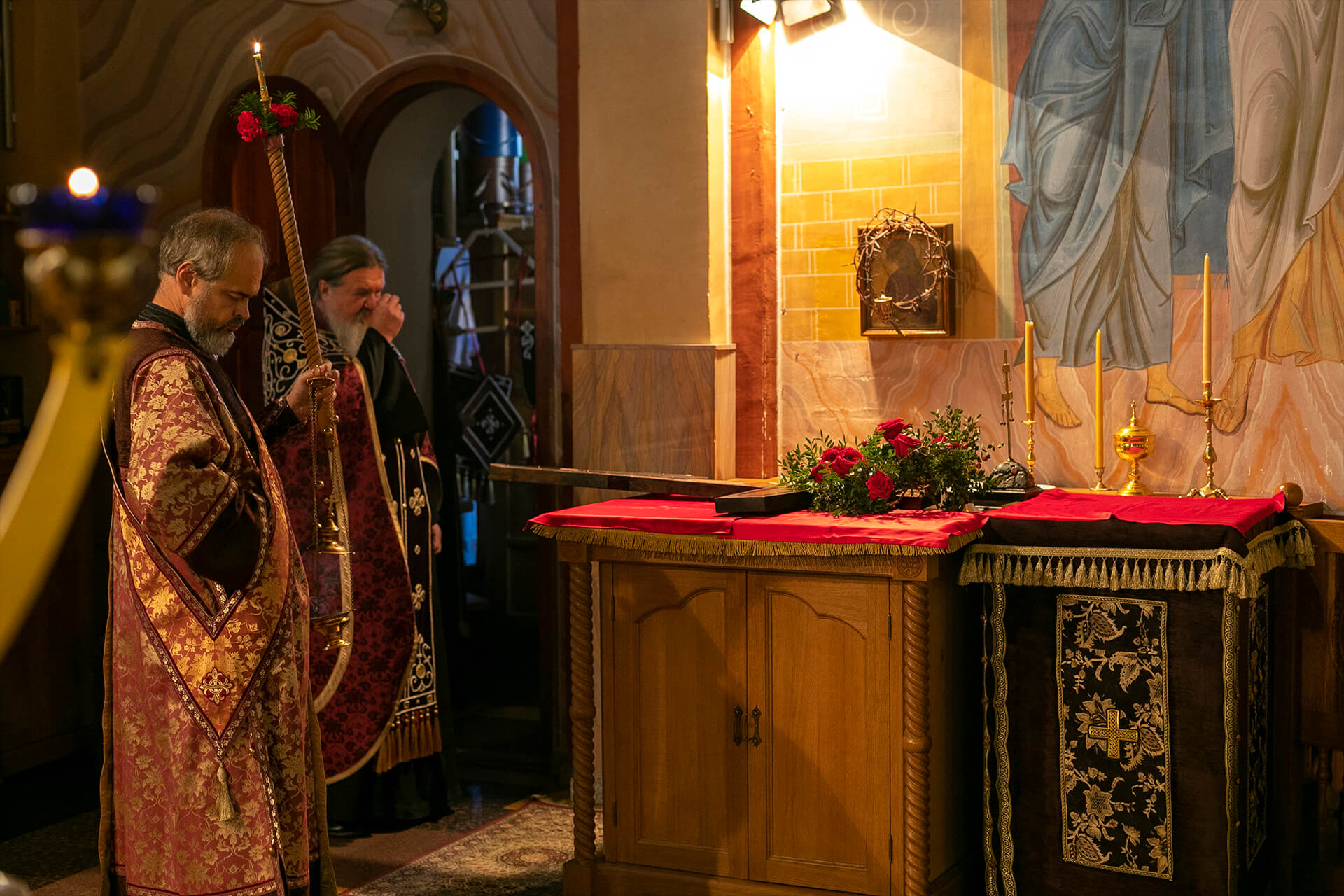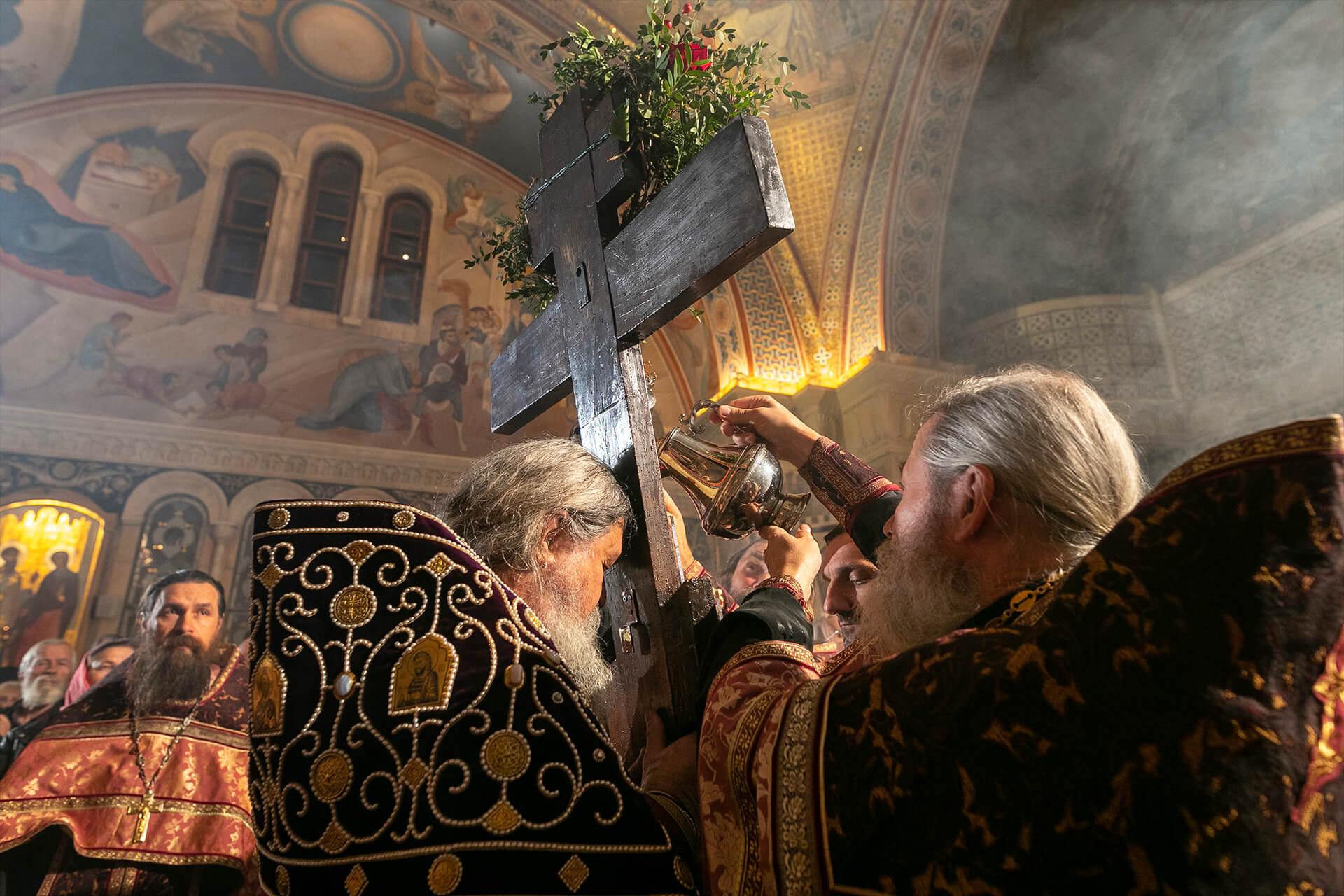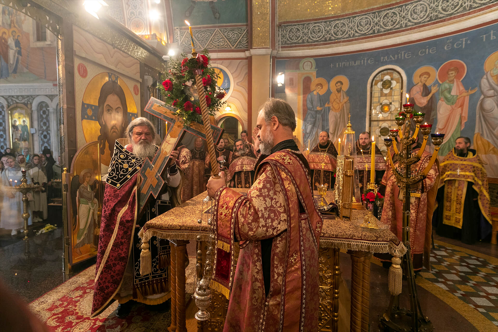 В праздник Воздвижения Честного и Животворящего Креста Господня в нашем монастыре торжественно совершилось Всенощное бдение с чином воздвижения Креста.