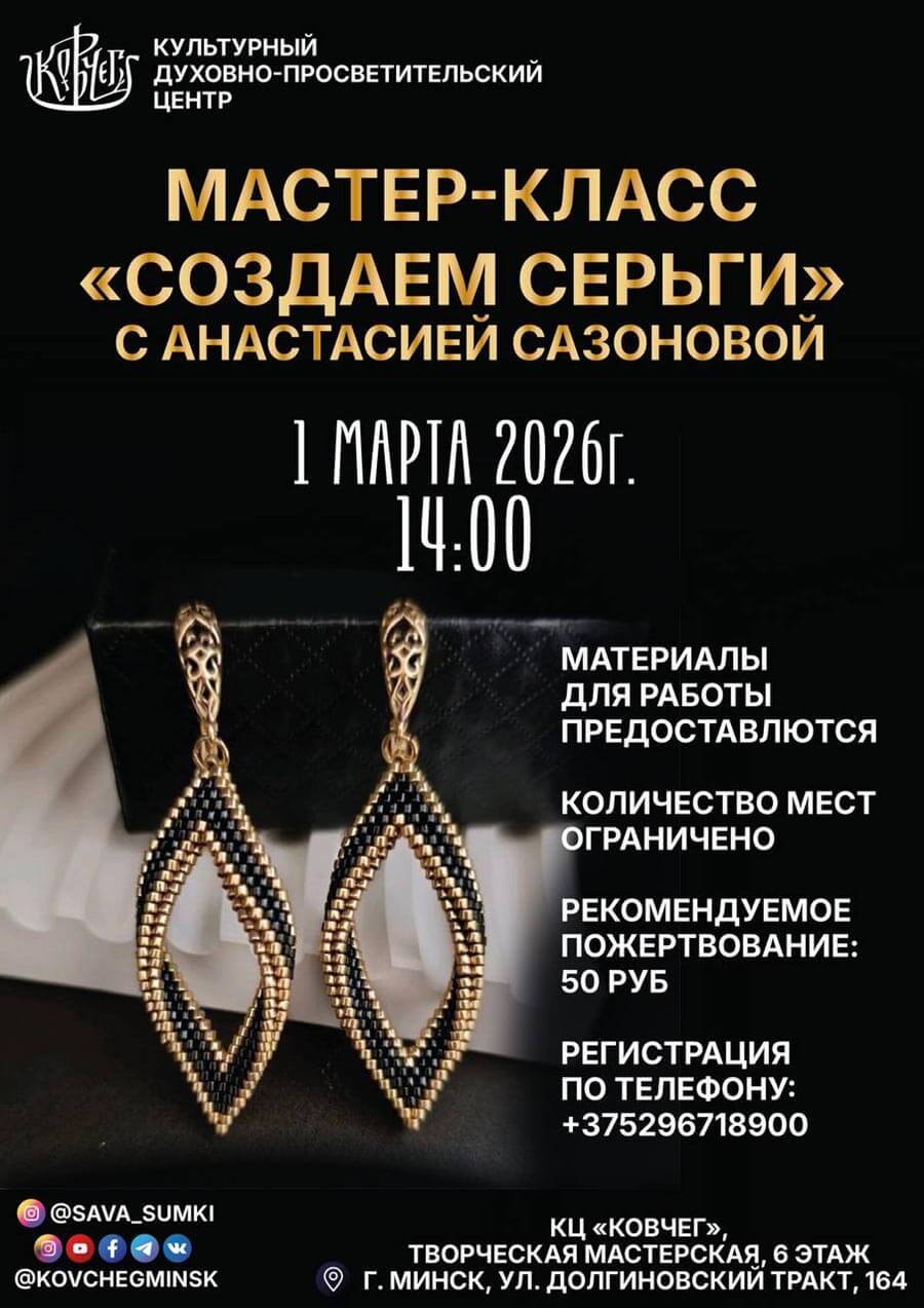 Дорогие друзья! В воскресенье, 1 марта, приглашаем на мастер-класс «Создаем серьги» с Анастасией Сазоновой, где вас научат работать с аналогом японского бисера MIYUKI Delica и прочной лавсановой нитью. Все необходимые материалы для работы предоставляются.