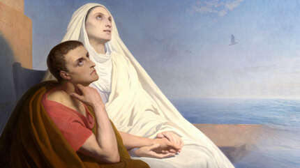 Однажды Августин почувствовал в сердце страшную бурю, которая должна была разразиться потоком слез. Он уединился в саду, бросился на землю под смоковницей и зарыдал…